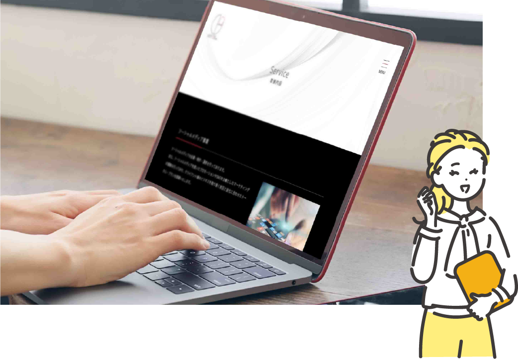 専門知識は必要ありません。経験豊富なプロのディレクターがお客様のご要望に合ったホームページを提案します。ホームページの色や文章、写真選びなど、全ての業務をプロのディレクターにお任せください。初めてのお客様も安心してご利用いただける体制を整えています。